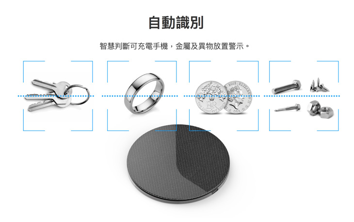 .智慧判斷可充電手機 金屬異物放置警示