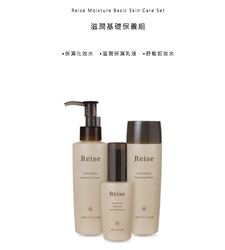 [Reise] is not just a skincare brand but has more to offer than excellent quality. The true meaning behind [Reise] is deeply related to our love to Taiwan. The beauty of life is all God's creation coexists harmoniously, so we believe products which respect the nature bring entirely satisfaction. Action speaks louder than words, as a green skincare brand, [Reise] takes real action to show our gratitude, cherish and respect to this land, and inspires people who also love this land to easily incorporate green ideas into daily life.