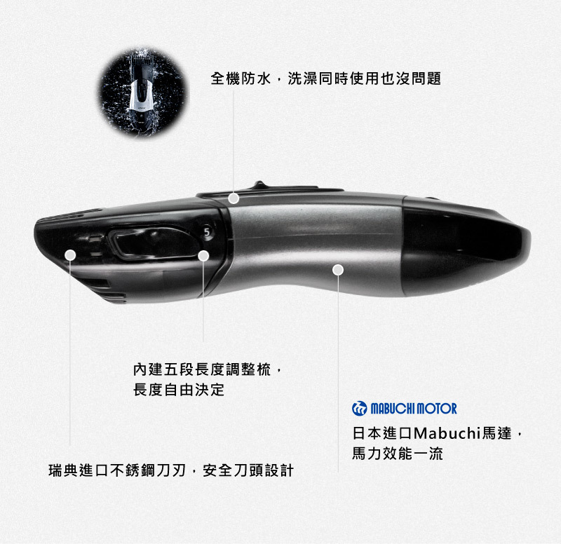 搭配日本進口Mabuchi馬達,超強馬力,讓您使用快速方便不卡毛。