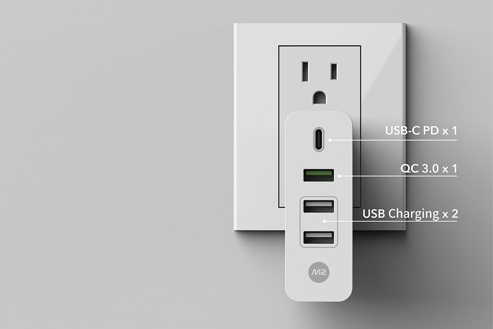 M2 Cube 提供 USB-C PD充電口 x1 / QC充電口 x1 / USB充電口 x2 等總共四個充電口,滿足你所有的充電需求!