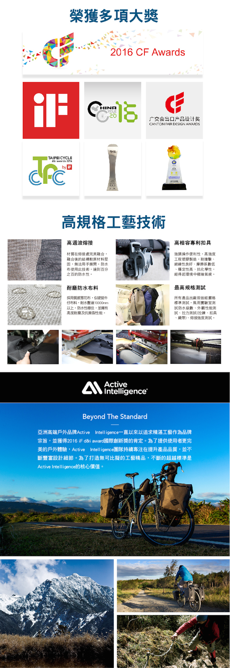 Active Intelligence | 品牌故事以獨特高周波技術打造來自亞洲戶外品牌,我們一直以追求精湛工藝作為品牌宗旨,並獲得2016 iF d&i award國際創新獎的肯定。為了提供使用者更完美的戶外體驗,Active Intelligence團隊持續專注在提升產品品質,並不斷豐富設計細節。為了打造無可比擬的工藝精品,不斷的超 越標準是Active Intelligence的核心價值。