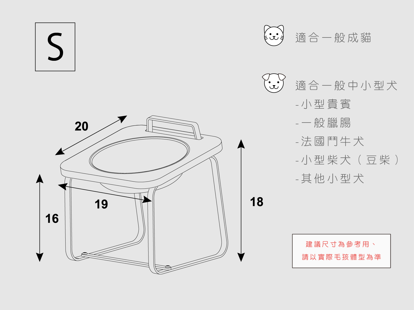 M20 (前端高度22公分) 專為中型犬及貓,如緬因貓等打造的高度。
