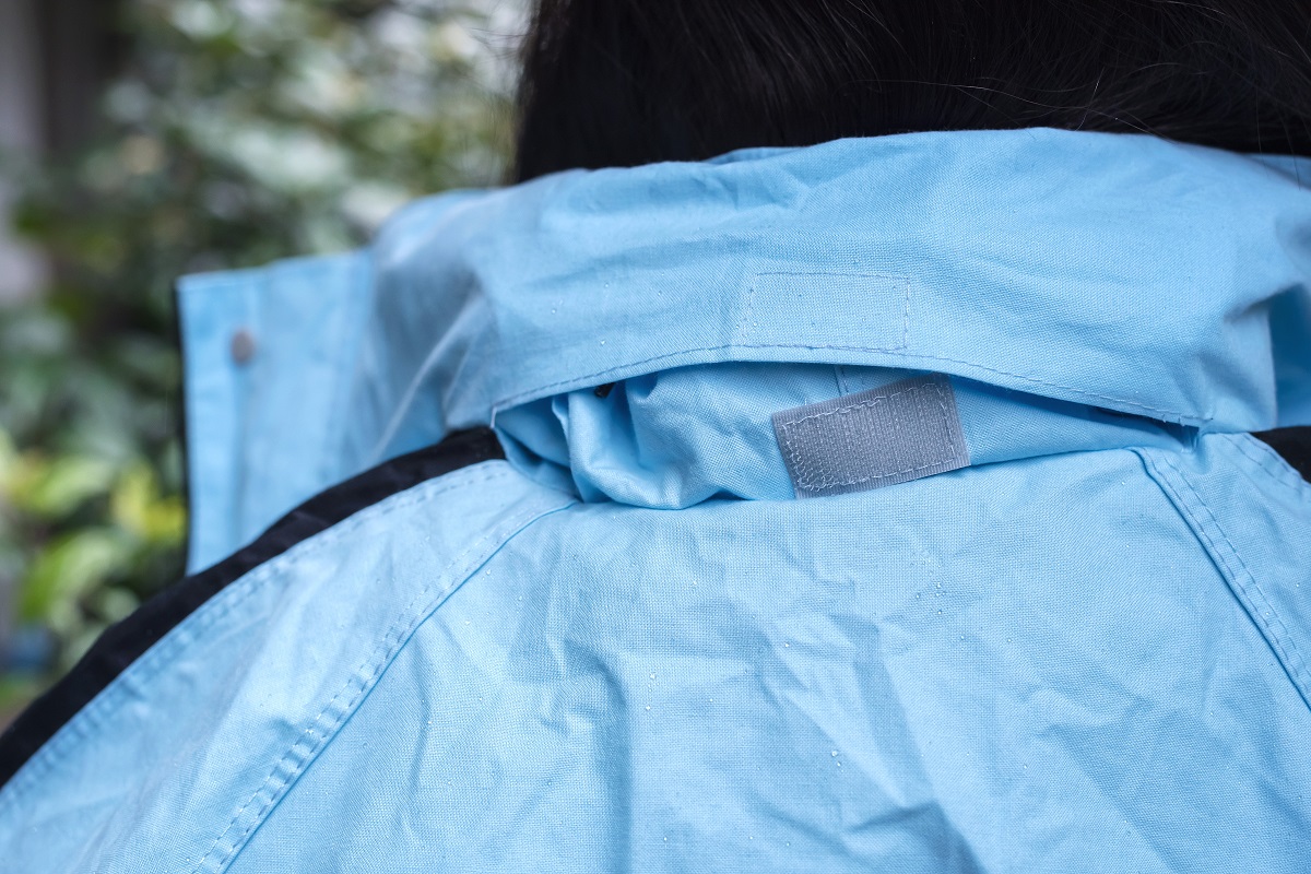除了以上的特性外,這款兩件式的風雨衣有可收納隱藏式帽子、能快速穿脫的防黏網設計、方便付錢的斜插口袋、不易灌水的鬆緊袖口、可調整腰寬的鬆緊帶等設計,讓雨衣更加符合人性,不再是一穿即丟的消耗品。