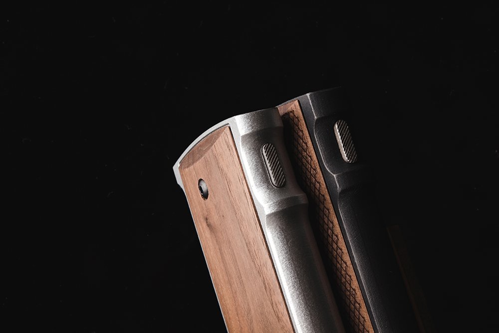 M1911的握把在最開始到1939年間,都是使用胡桃木雕刻而成,而護木上的雙菱格紋(double-diamond)更是M1911流傳百年的標緻。雖然1939年後全面改為塑膠,但為了要重現經典,我們堅持使用原木製作。然而問遍了整個台灣的木材廠都沒有廠能承接。最後我們委託進口商,從原產地美國運回胡桃木,然後委託熱血的高手Maker們以幾近半手工的方式一片一片雕刻成。這很瘋狂,每一片護木上都有我們的指紋,但為了向經典致敬,值得。