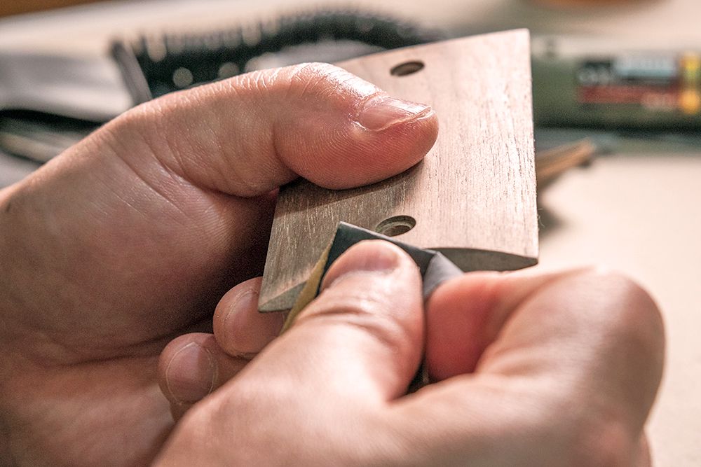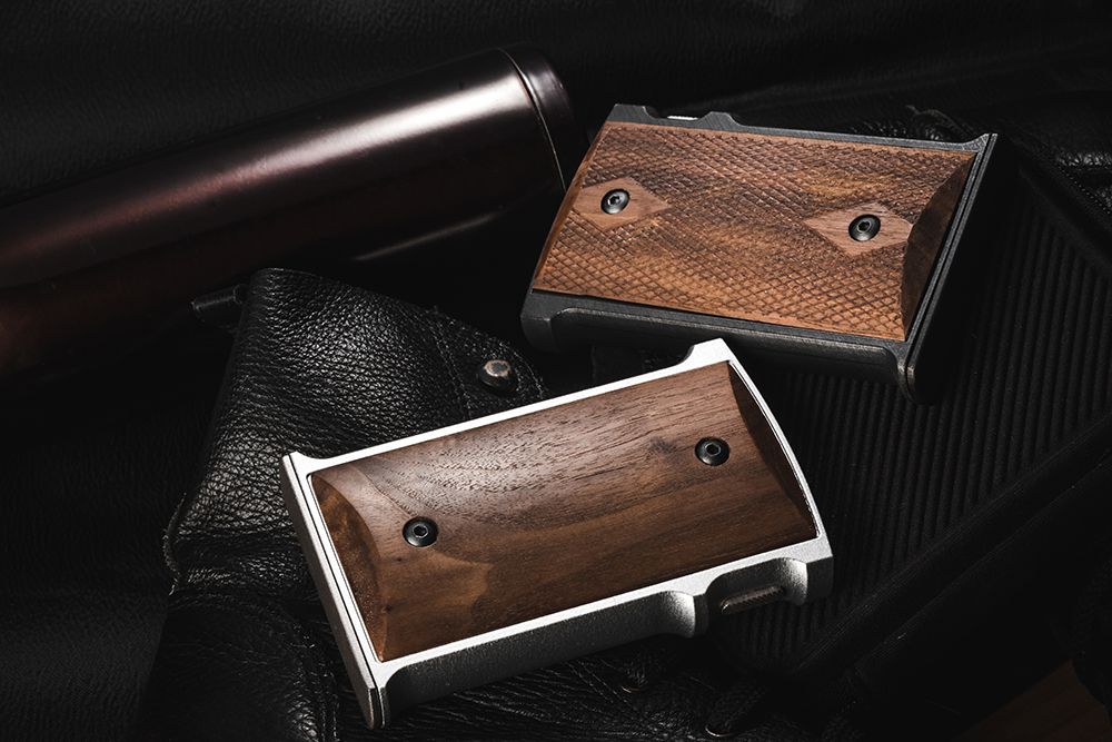 除此之外,他們其實吃最多苦頭的是它的握把。在 1939 年之後,為了成本以及生產的速度,軍工廠將 M1911 的握把全面改為塑膠製的。但該團隊不願意花了那麼多力氣全金屬打造後,使用者卻只能握著沒有質感的塑膠製品。於是他們花了很多時間去翻書、考證,發現最原始的 M1911 握把是胡桃木製成,而 M1911 最經典的標誌則是握把上的雙菱格紋。為了重現這個經典,他們跑遍台灣大小木工廠都找不到人承接,最後他們決定自己從原產地美國進口胡桃木,然後委託 Maker 們以近半手工的方式一片一片雕刻而成。很瘋狂,但他們覺得很值得。
