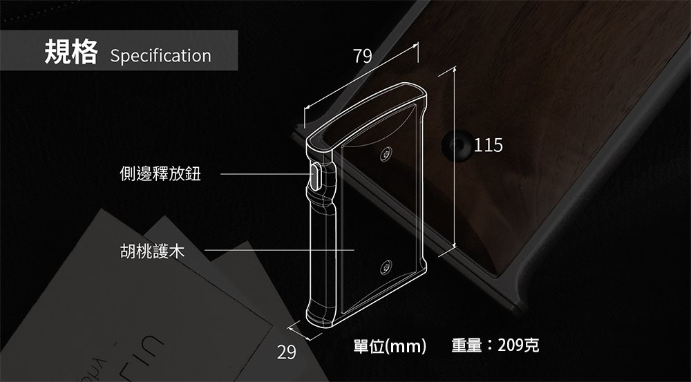 尺寸:79x115x29mm材質:胡桃護木規格:霧銀、鐵灰包裝服務:無 -