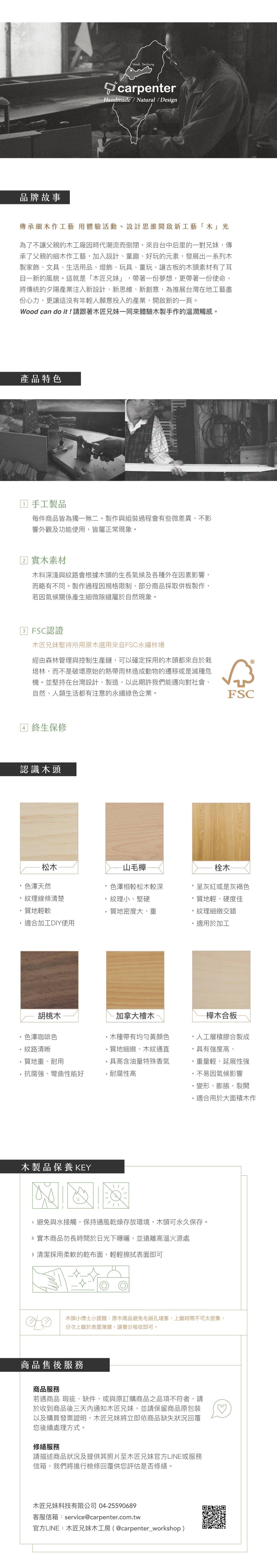 木匠兄妹 | 品牌故事為了不讓父親的木工廠因時代潮流而倒閉,來自台中后里的一對兄妹,傳承了父親26年的細木作工藝,加入設計、童趣、好玩的元素,發展出一系列木製家飾、文具、生活用品、燈飾、玩具、童玩,讓古板的木頭素材有了耳目一新的風貌,這就是「木匠兄妹」。帶著一份夢想,更帶著一份使命,將傳統的夕陽產業注入新設計、新思維、新創意,為推展台灣在地工藝盡份心力,更讓這沒有年輕人願意投入的產業,開啟新的一頁。Wood can do it!! 跟著木匠兄妹一起品木、玩木、愛木!一同來體驗木製手作的溫潤觸感。