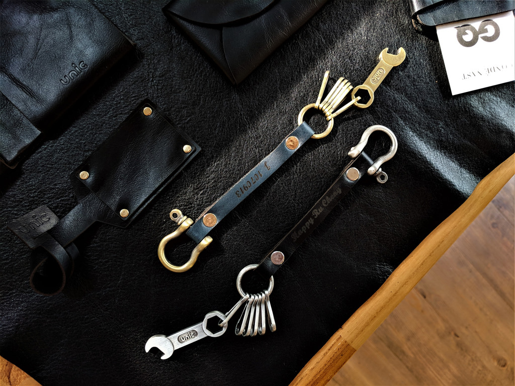 低調而內斂的皮繩鑰匙圈,不過分張揚,個人專屬的刻字內容,融合成為皮繩上設計的一部份,但近看時又可以清晰的閱讀,讓你感念起送禮人的暖心祝福。