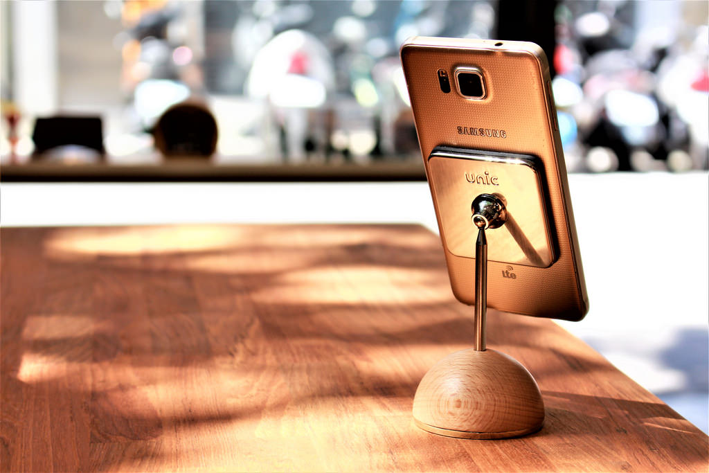 設計理念:這次我們採用了來自北美的胡桃木及歐洲的山毛櫸,打造出完美的原木半球體結合高質感的合金底座,除了增加配重更勾勒出極簡俐落的冷冽線條,讓使用者在操作手機時擁有最舒適的安心感,堅持一體成形的金屬連桿與球關節結構無縫接軌,巧妙的隱藏了螺絲、完美地連結了金屬髮絲紋背蓋,並烙印上unic的logo驗明正身,代表我們在工藝上追求完美的堅持。