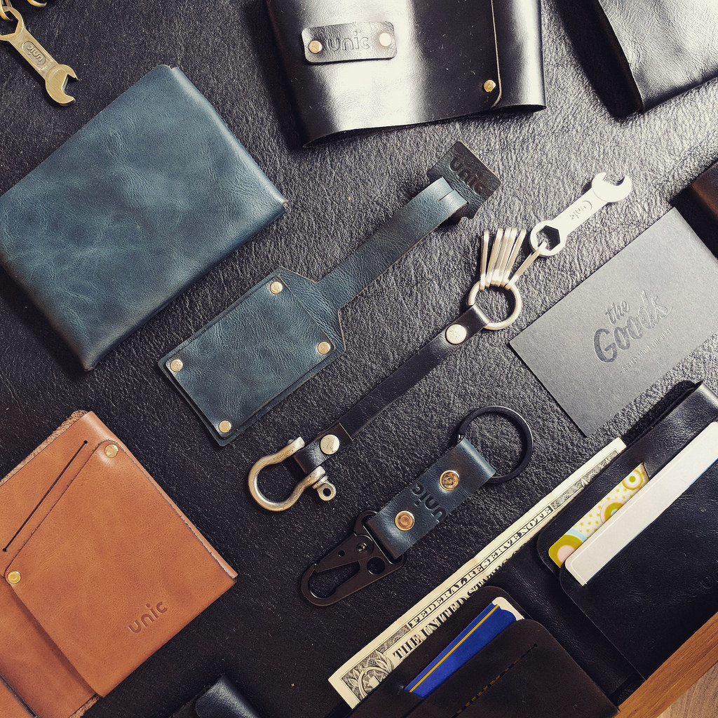 Unic無縫線極簡皮件系列,是專門為了極簡主義者而設計。目的是幫助人們極簡、收納,秉持著「用最少的物品,過著最俐落的生活」為主軸,開發了一系列以日本摺紙藝術(Origami)為雛形,僅用少量鉚釘固定的系列皮件,雖然精巧卻堅固耐用。既使退去了多餘的縫線及化學黏膠,輕薄及耐用度仍然超越一般皮夾。