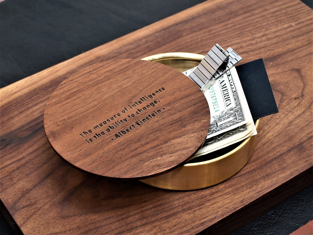 時尚感強烈的多功能黃銅收納盒搭配原木蓋設計不但可以收納手鍊、耳環、飾品等隨身小物