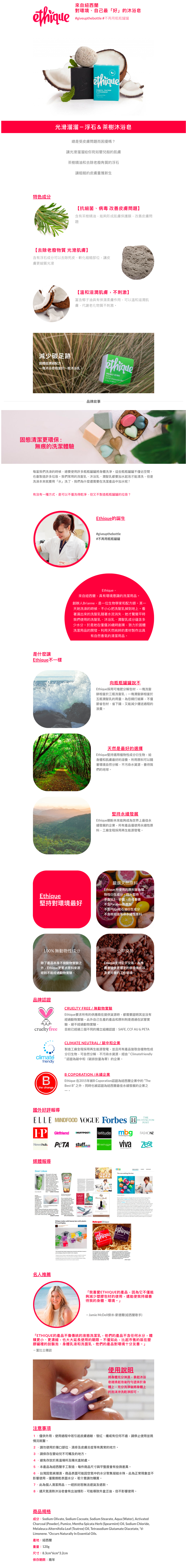 創辦人Brianne,是一位生物學家和配方師。 某一天她洗澡的時候,不小心把洗髮乳掉到地上。 看著漏出來的洗髮乳隨著水流消失, 她才驚覺平時我們使用的洗髮乳、沐浴乳、潤髮乳成分蘊含多少水分。 於是她在僅僅20歲時創業,致力於固體洗潔用品的開發。 利用天然純粹的素材製作出具有自然香氣的清潔用品 Ethique 。