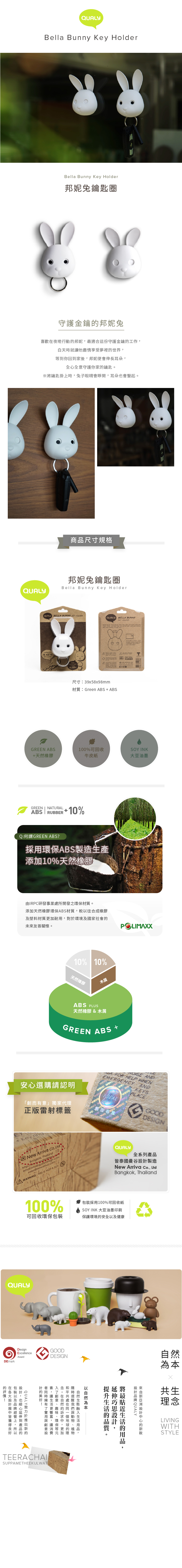 QUALY的設計一部份是以自然為本,將自然生態融入生活用品中,時時刻刻提醒我 們自然生態的美好,以及與動物、植物和平共處在同一個地球的理念。在自然的訴求中,更加入了創意、趣味、多彩、環保等元素,讓生活更豐富,讓消費者同時擁有了實用與創意設計的美好!