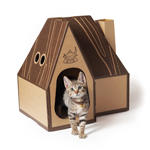 以日本武士屋為設計概念,是一間透氣佳又有煙囪的可愛小屋,入口大門適合各種體型的貓咪,武士之屋內附抓板,指甲屑與紙削屑會掉落在貓窩底部,只要在拿起抓板時倒除即可,方便又乾淨。可另外添購抓板,趕快給愛貓一間遮風避寒的小屋吧!