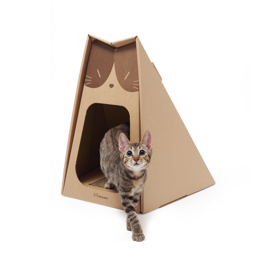 貓咪療癒了都會人的空虛心靈,因為愛貓進而想懂貓,我們細膩的觀察牠們在生活上的種種需求與細節。愛貓人都知道牠們對紙箱沒有任何抗拒力,各種大小尺寸的箱子牠都想進去探索一下,聞一聞、抓一抓。由於有這樣特殊的癖好,大家也會拿身邊隨手可得的紙箱DIY切割幾個的屋子或抓板給貓咪,主子舒壓了毛家長們就開心了,當然我們也是如此。之後就慢慢發現破爛的紙箱、許多紙屑以及爪屑貓毛灑落滿地,如何解決這些問題?於是我們想製作一個「完美的貓傢俱」,經過約半年的摸索,從大量繪製草圖、製作小模型、等比例打樣與貓咪的試用,第一個貓傢俱「貓躺椅」出現了,期間還設計另一款貓傢俱的:鑽石床。Hulumao的貓傢俱最大特色就是「以摺疊、卡接、不用黏膠的DIY方式組裝成型」。每件貓傢俱裡面都會有專屬它的抓板,當貓咪抓抓後的紙屑爪屑都會留在箱體裡,倘若抓板已經不堪使用,外箱依舊堅固時,可以另外單獨購買抓板。我們終於成功解決了這些使用上的問題,當然還包括漂亮的外觀,Hulumao貓傢俱獲義大利設計比賽「寵物用品類」雙料金獎,於是我們更具信心決定繼續往前邁進。貓咪的慵懶時光,Hulu~ Hulu~ Hulu~ 貓咪發出的低鳴呼嚕聲讓自己與人們雙方都感到愉悅,品牌就訂定為「Hulumao 呼嚕貓」,只要注意看就會發現品牌Logo也是由「HULU」演變成貓咪的表情,我們期許貓咪們都能在Hulumao的貓傢俱上放鬆並且Hulu~ Hulu~