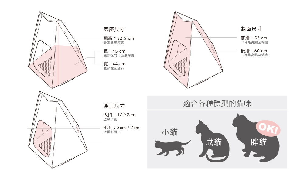 呼嚕貓系列貓傢俱在設計上,無論外形與內部空間適合各種體型的貓咪,讓您家的愛貓在休息時能更放鬆。