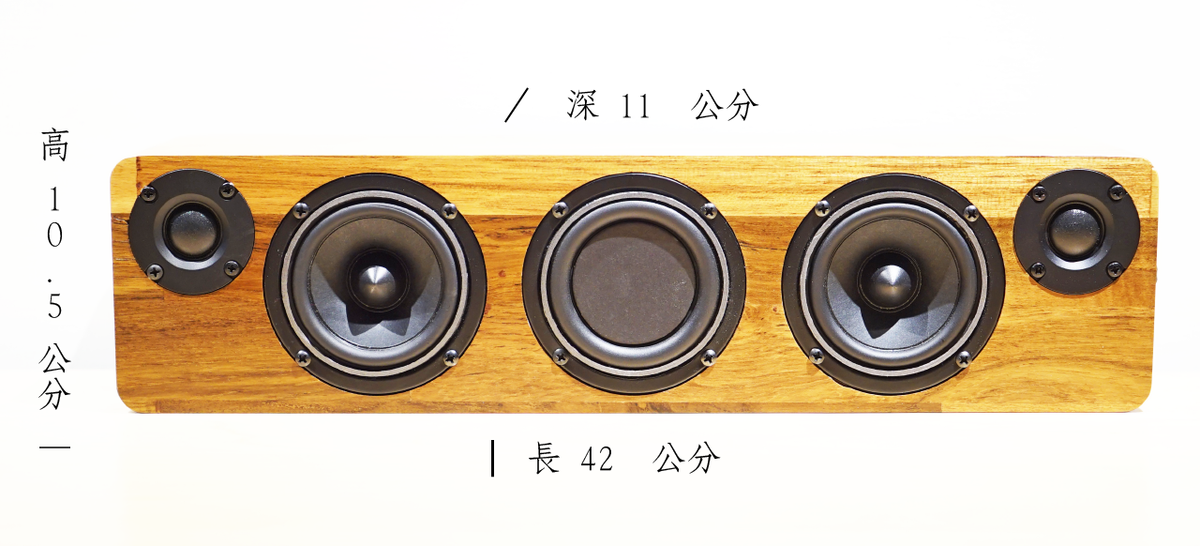 尺寸:42 x 10.5 x 11 公分材質:柚木、胡桃木規格:・0.75 吋:高音單體-15W x 2