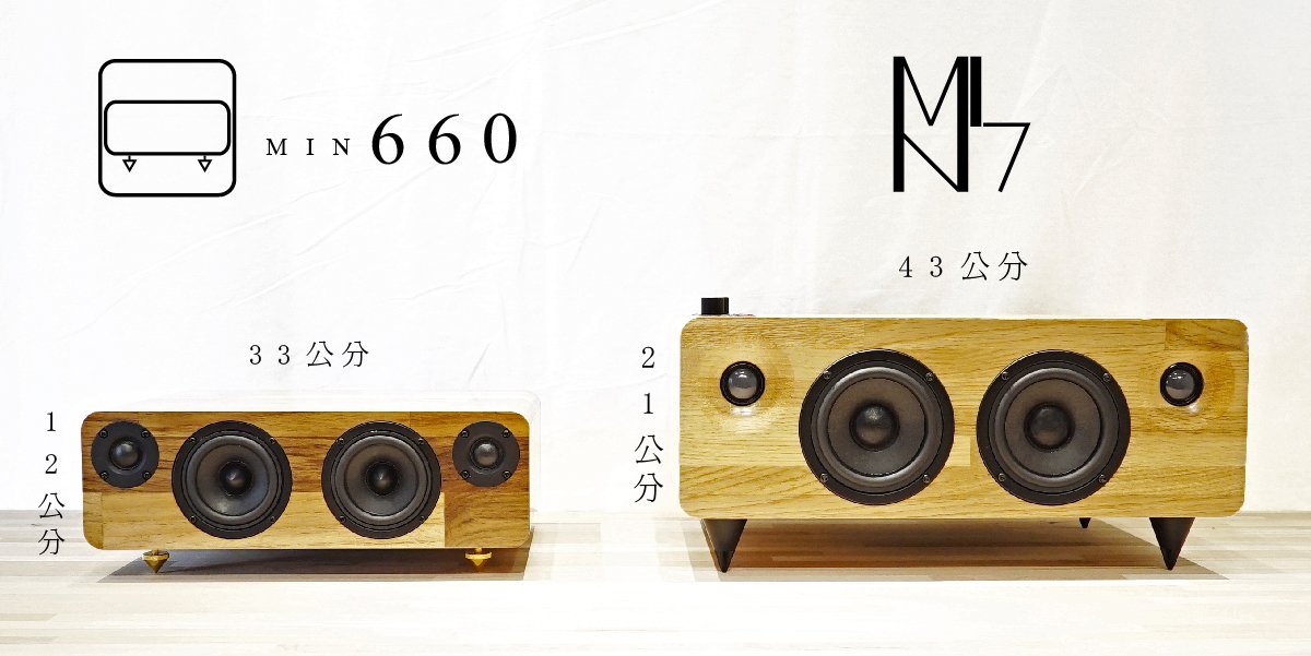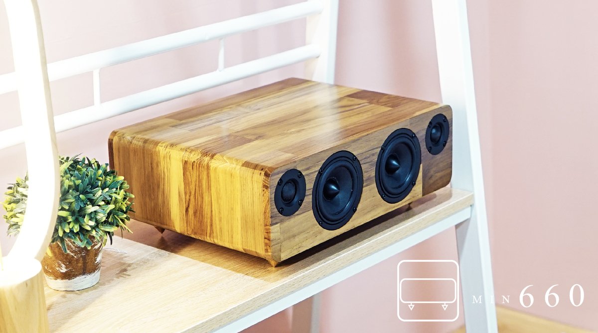 MIN 660 ,三音室設計,人聲的質感緻密,鳴放出來的歌聲如清脆的色彩般,以輕巧而具有張力的生動音色傳達出音樂的氣息,內建高達 5.25吋 的重低音喇叭單體往下延伸,四顆鍍金角錐,重低音為可調式,依據各人的喜好來調整。