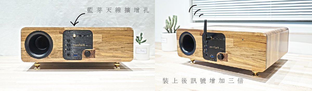 有感於市面上很多藍牙喇叭連線不穩定和接收距離短,MIN660 的天線裝置為藍牙訊號加強使用,如果一般使用下訊號已經穩定時可不加裝,加裝後訊號增強三倍,距離可達15~20米。![]()