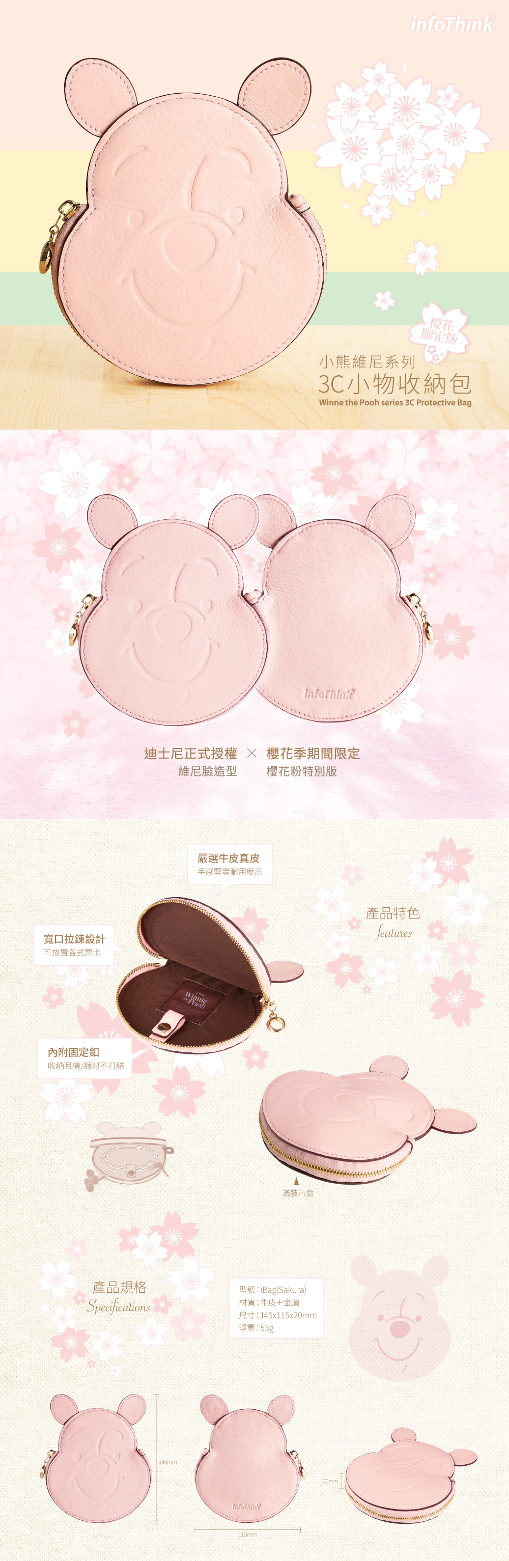 infoThink_小熊維尼系列 3C小物收納包 櫻花限定版