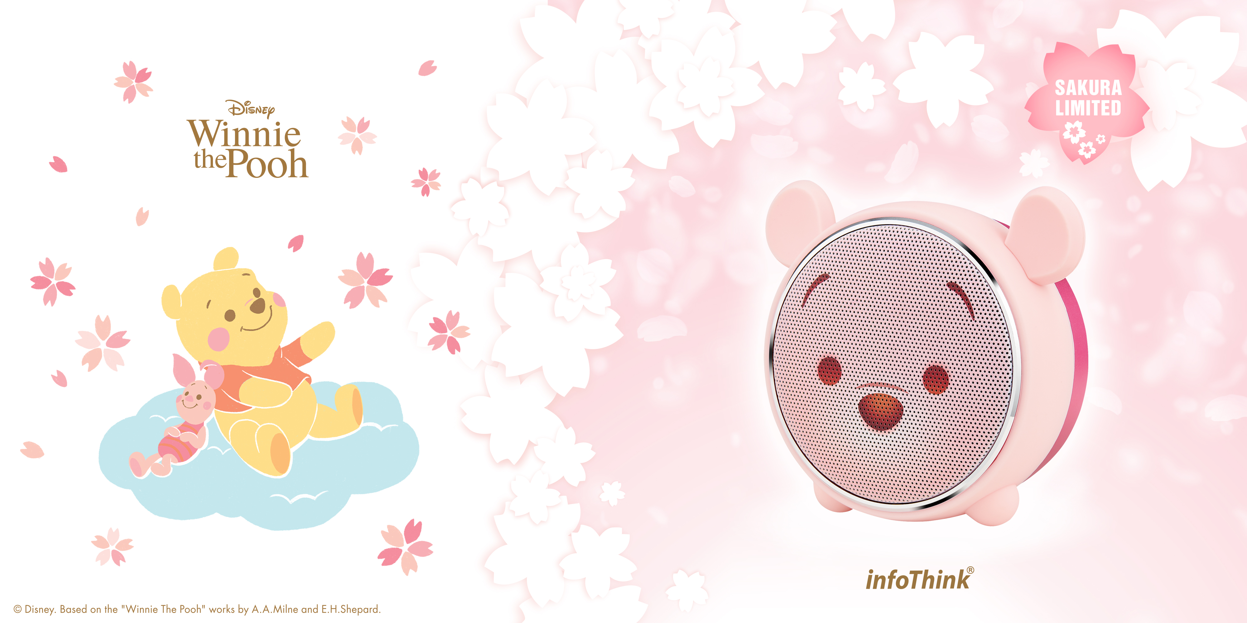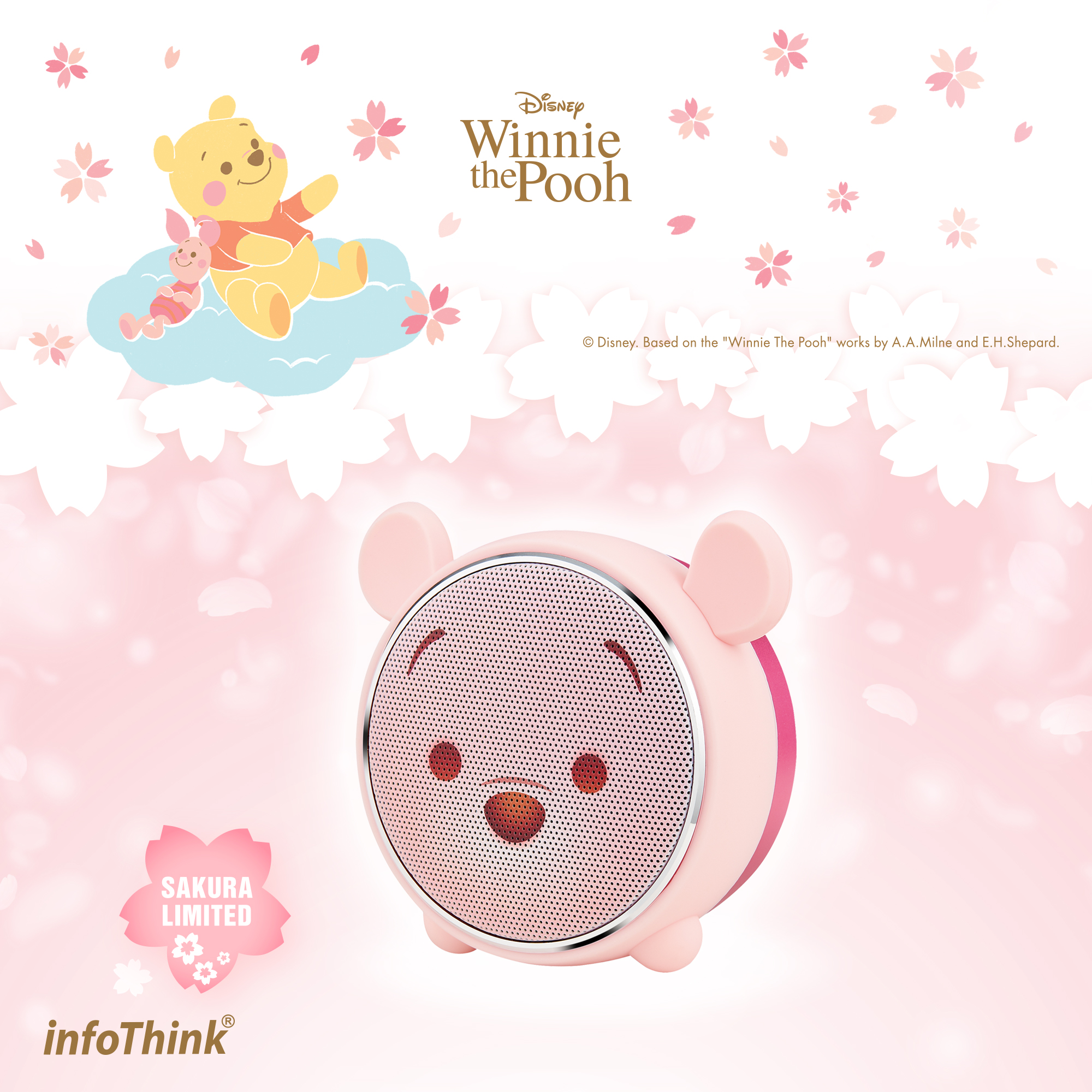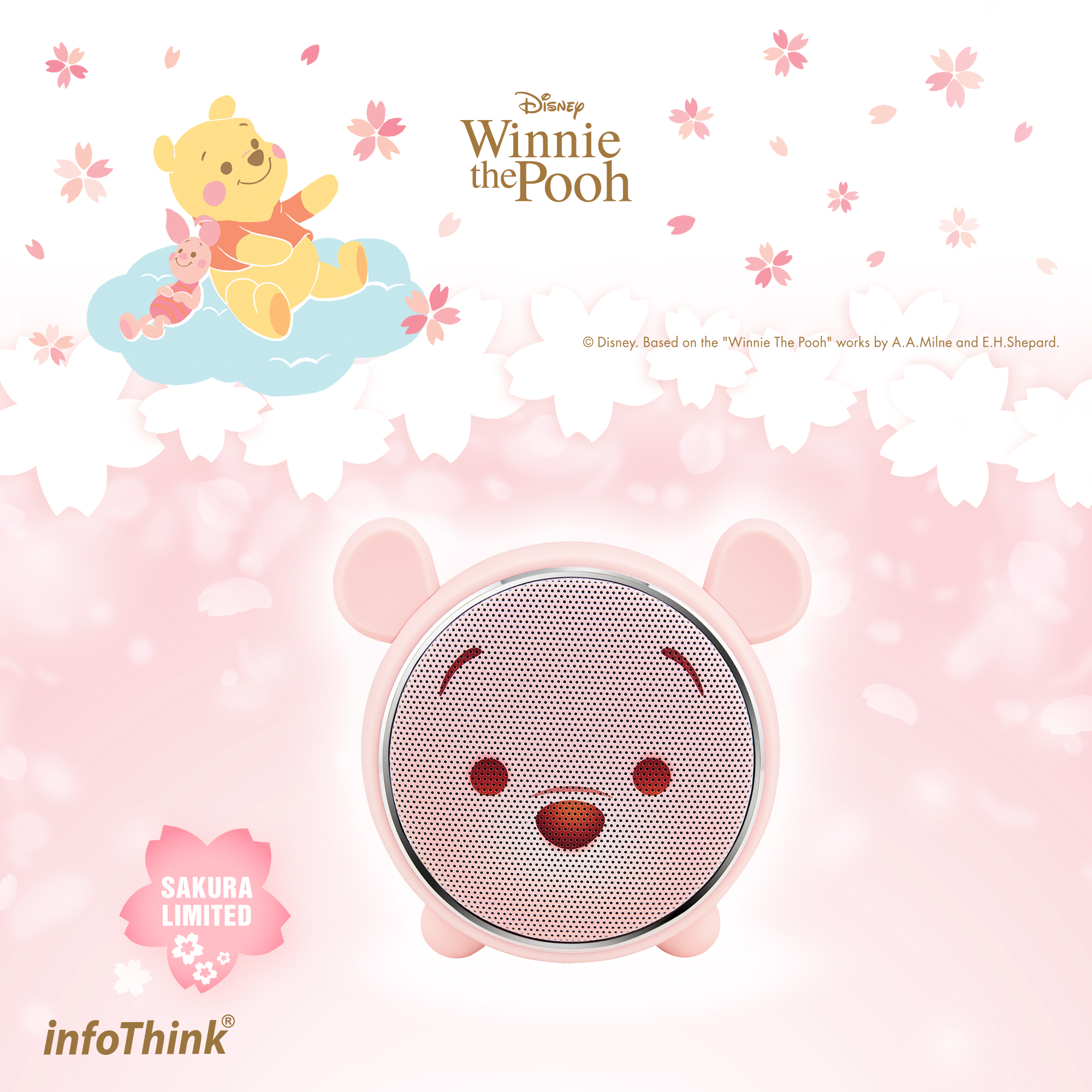 infoThink_小熊維尼系列 藍牙燈光喇叭 櫻花限定版
