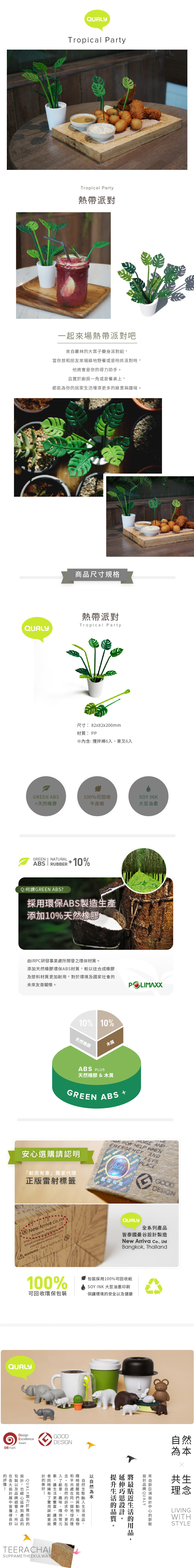 一起來場熱帶派對吧來自叢林的大葉子變身派對組,當你想和朋友來場綠地野餐或是時尚派對時,他將會是你的得力助手。且置於廚房一角或是餐桌上,都能為你的居家生活增添更多的綠意與趣味![]()