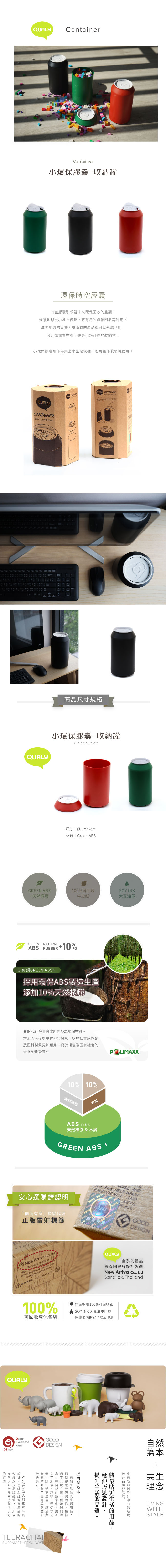 尺寸:Φ 11 x 22 cm材質:Green ABS規格:內容物:收納罐一入包裝服務:無 -