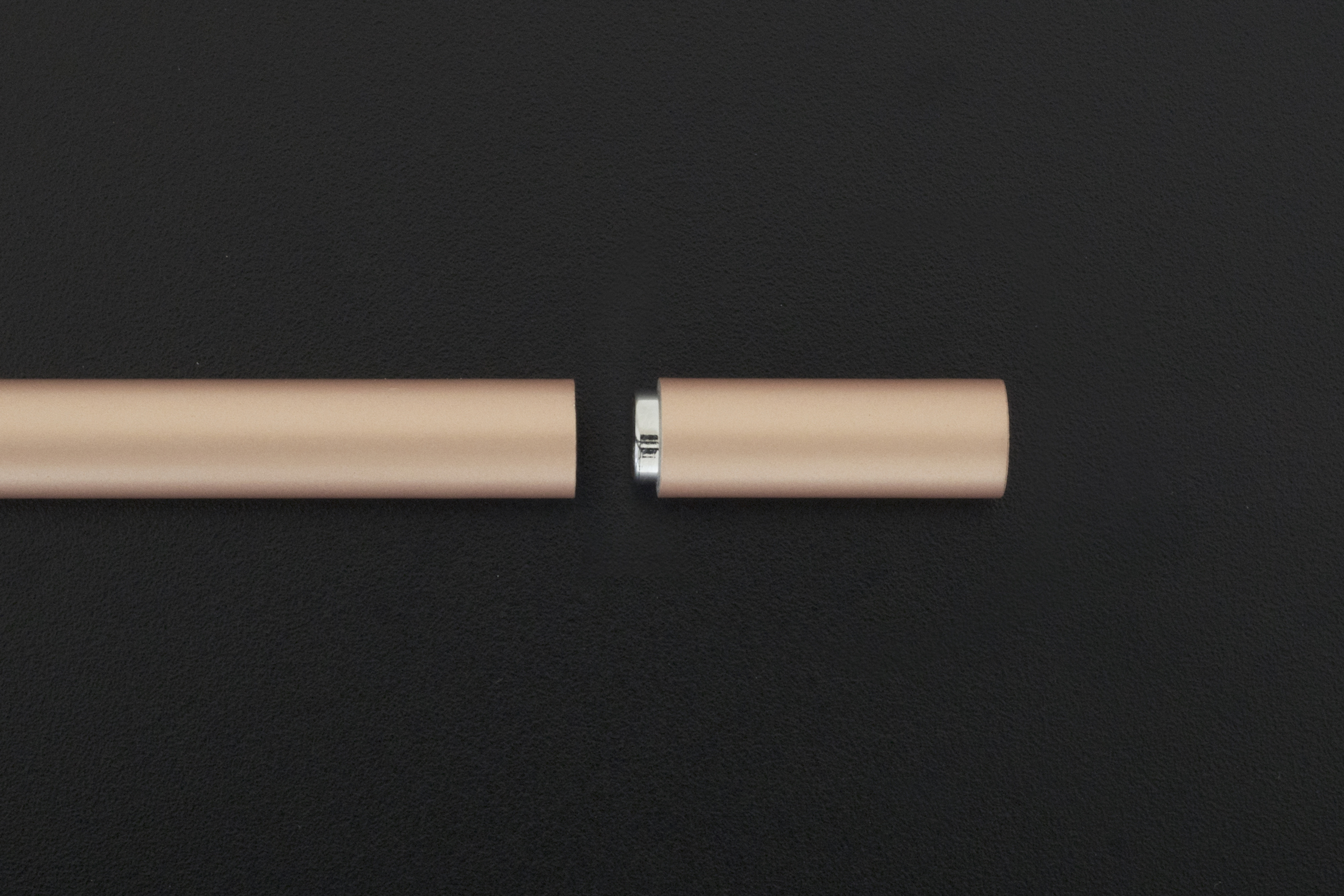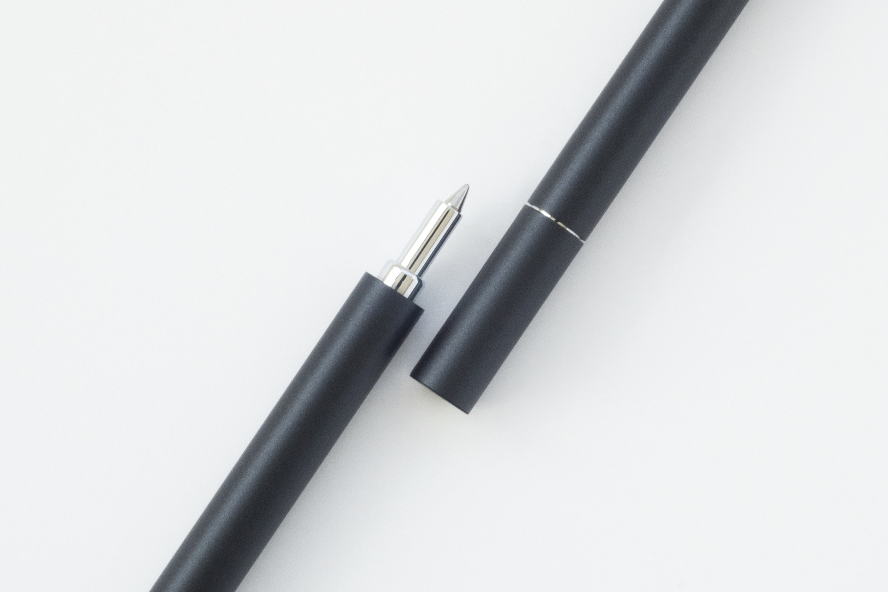 極纖幼筆身彷如「外殼」般緊貼保護筆芯。附有磁力的筆蓋,讓你書寫時置於筆桿末端,又或輕鬆地把筆蓋合上。