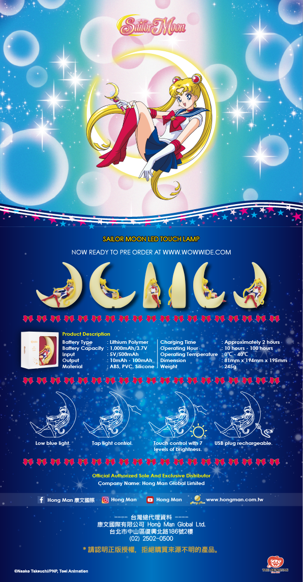 霧化工藝製成的月亮造型,使燈光更加柔和溫暖。一觸即亮,隨時點亮好心情!具有分段調節光亮度的功能,想多亮皆可隨意調控;不只是美少女戰士鐵粉的收藏品,更是居家擺設好物。![]()
