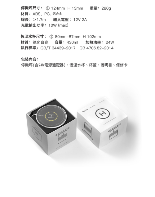包裝內容:停機坪(含24W電源適配器)、恆溫水杯 杯蓋、說明書、保修卡包裝服務:無 -