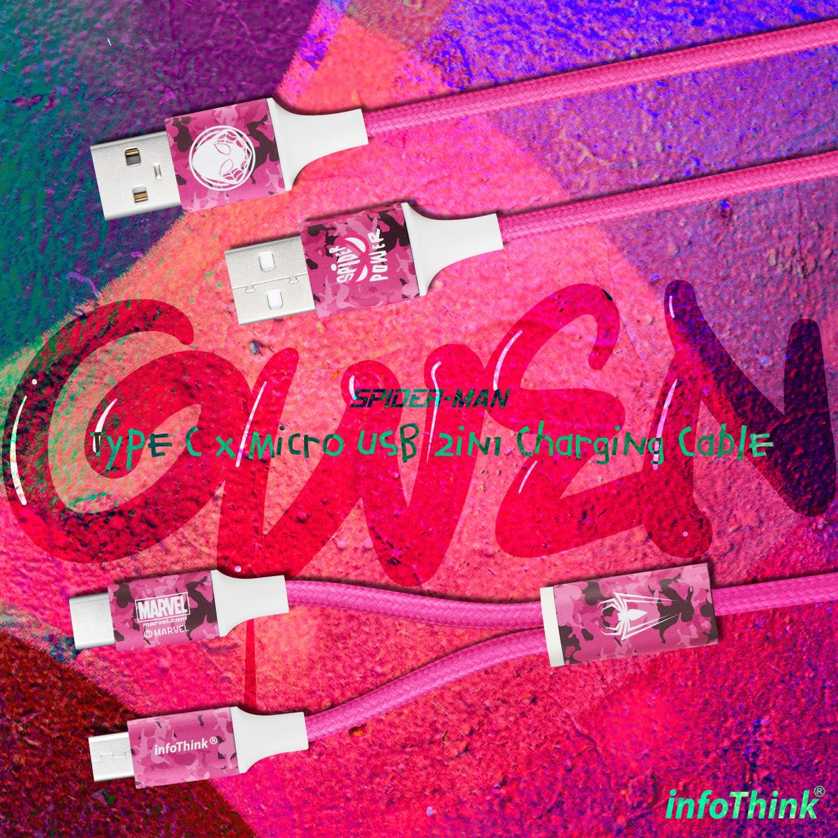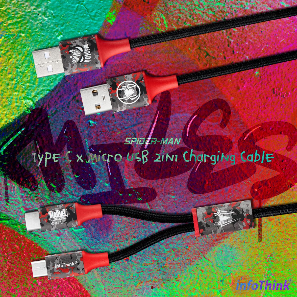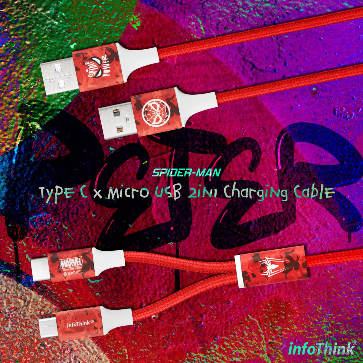 infoThink_蜘蛛人系列 Type C x Micro USB 2in1充電線(三色選)
