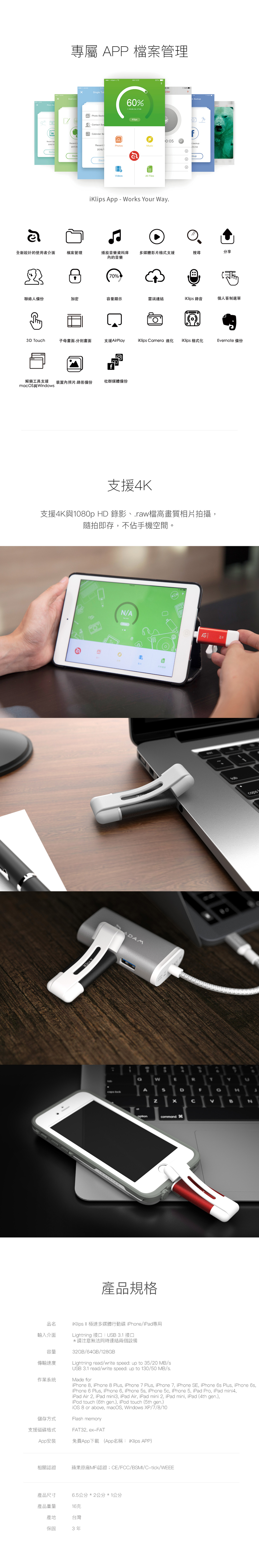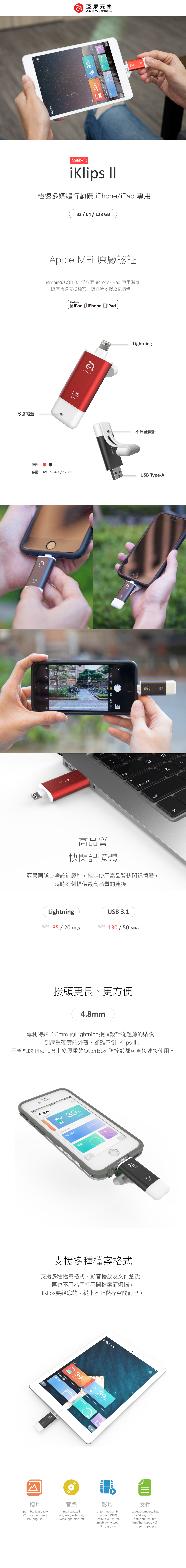iKlips II 二代極速多媒體行動碟 iPhone/iPad專用 32GB(兩色選)