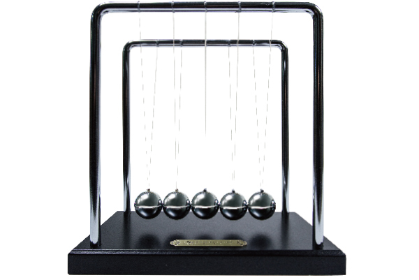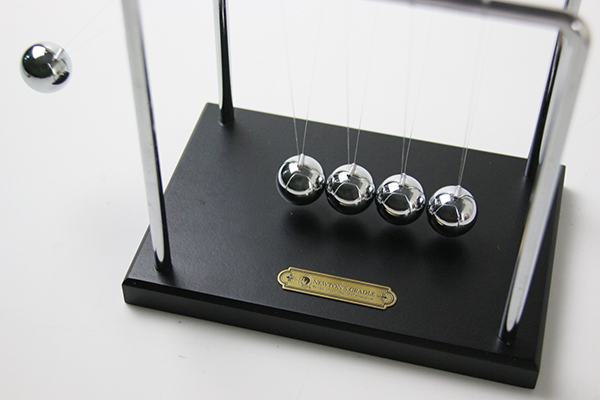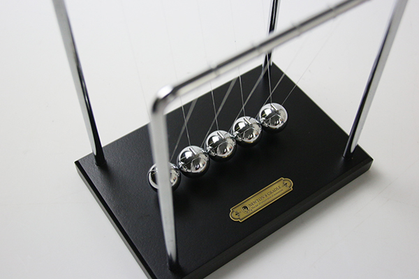 物理學原理中的動量守恆定理,相信大家都很熟悉。使用一颗球推動另外4顆球,你就會發現,只有1颗球會來回擺動;如果是2颗球的話,2顆球來回擺動,不需任何電力就能讓球受力均匀撞擊,是相當趣味又好看的科學商品!