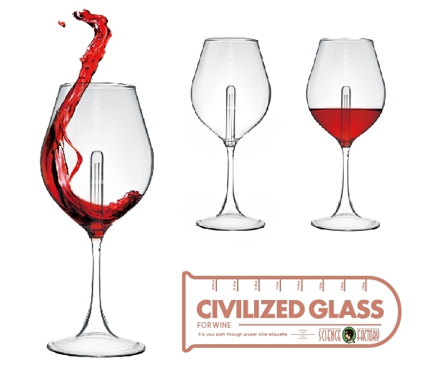 賽先生科學工廠專研其中科學原理,設計一款前所未見的紅酒禮儀杯,只要遵循紅酒倒酒禮儀,就可以當作正常的高腳杯使用,若是在品飲時多貪圖了美酒,紅酒就會從禮儀杯腳下方漏出,直到一滴不剩!
