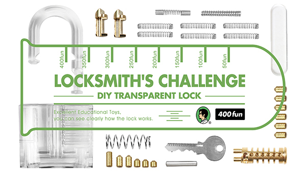喜愛挑戰解謎或DIY的你絕對不能錯過的全新挑戰- 徒手組裝全透明彈珠鎖!透過透明壓克力外殼能觀察到內部精密的黃銅構造及彈珠的細節,當完成時將鑰匙插入孔內轉動時,看到那令人驚嘆的機械運行過程,嘗試分辨出開鎖前後的排列組合差異,前往鎖匠之路!![]()