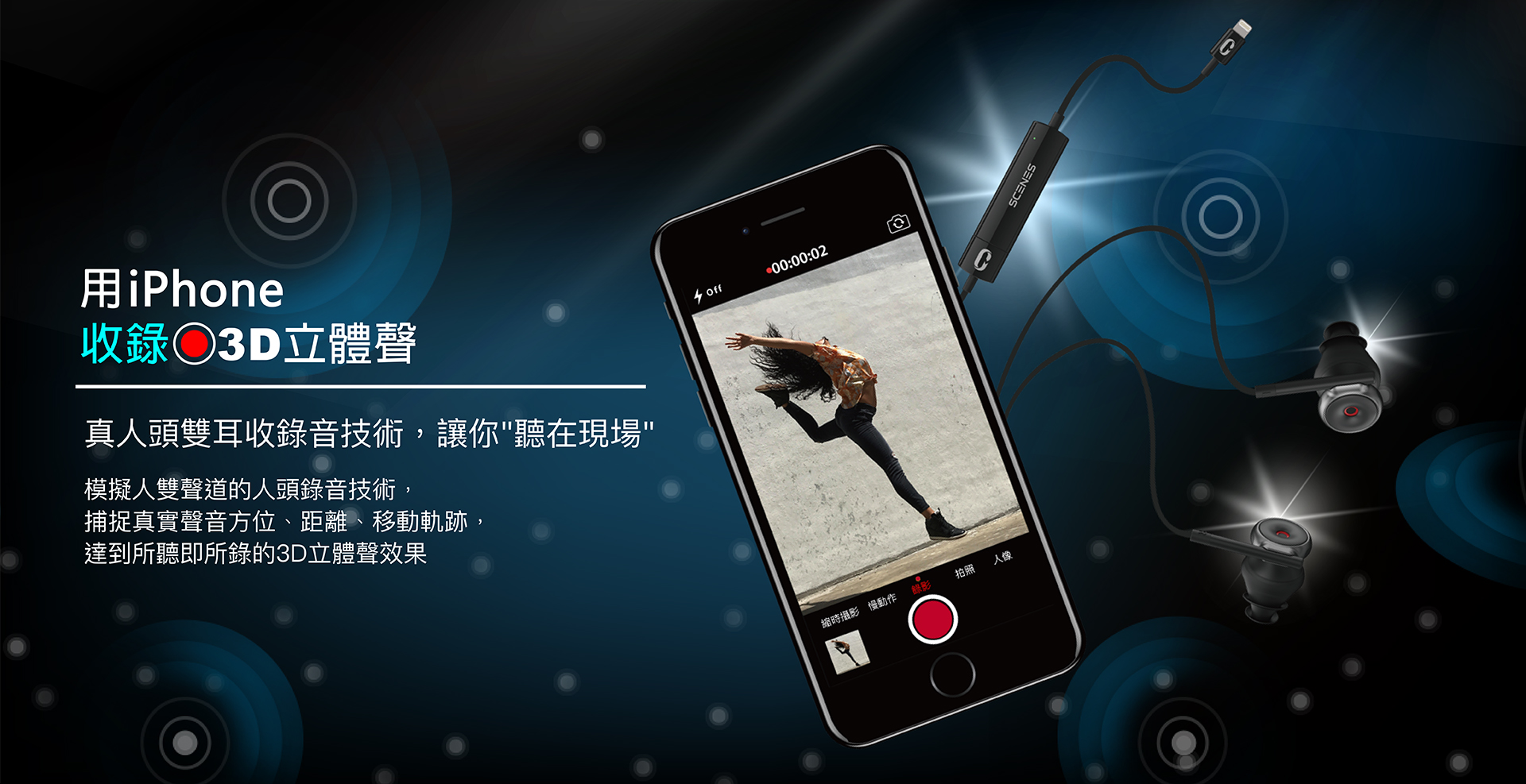 有了森聲,用iPhone拍影片,就可輕鬆收錄3D立體聲,隨時還原現場臨場感,還可當一般耳機使用!