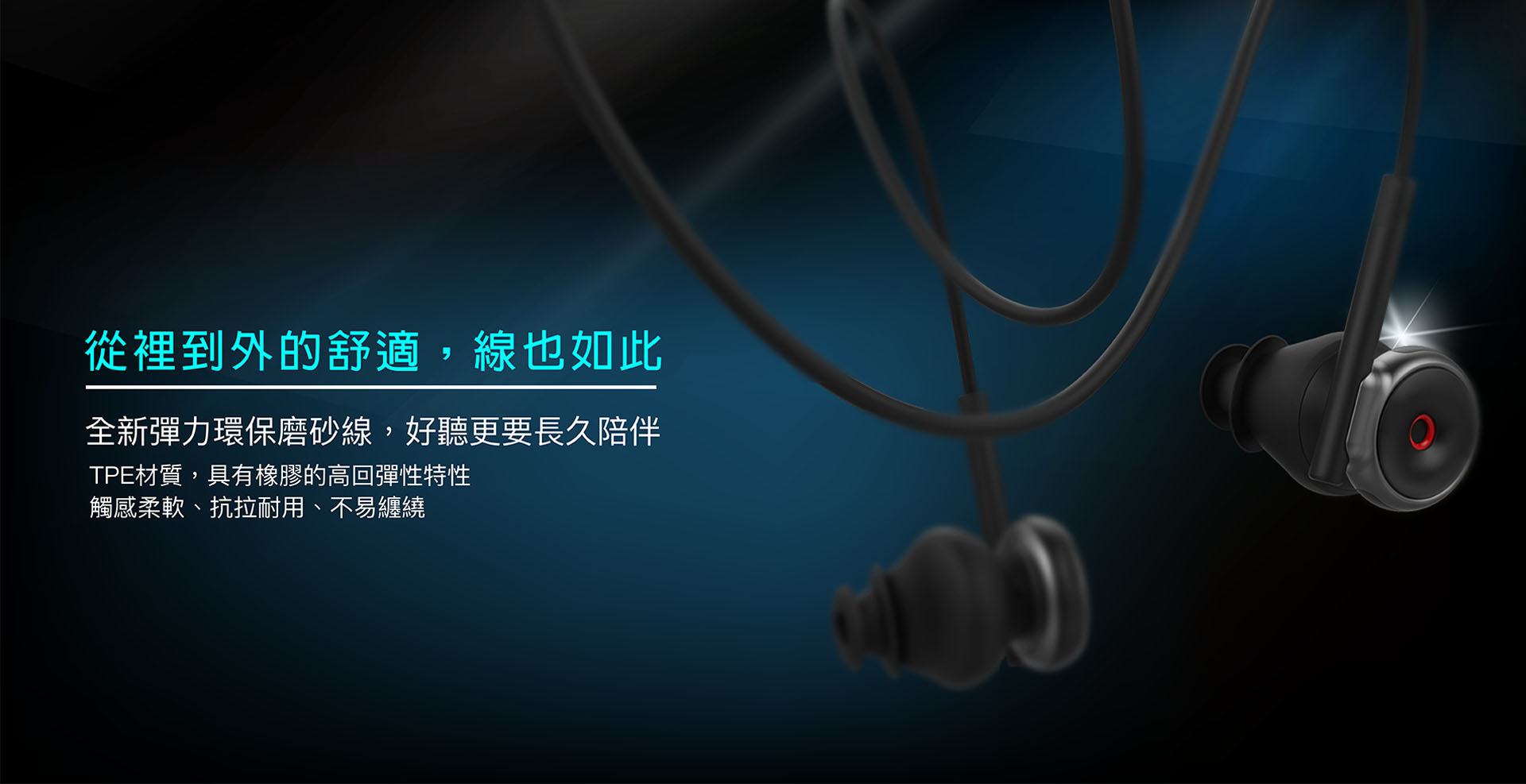 全新彈力環保磨砂線,好聽更要長久陪伴,TPE 材質,具有橡膠的高回彈性特性,觸感柔軟、抗拉耐用、不易纏繞。