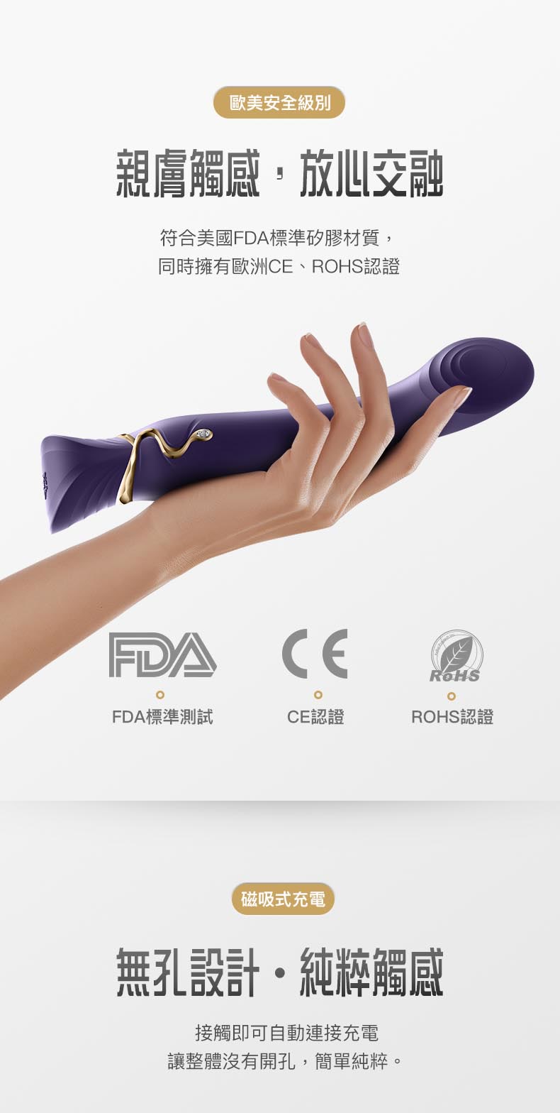 符合美國FDA標準矽膠材質,同時擁有歐洲CE、ROHS認證