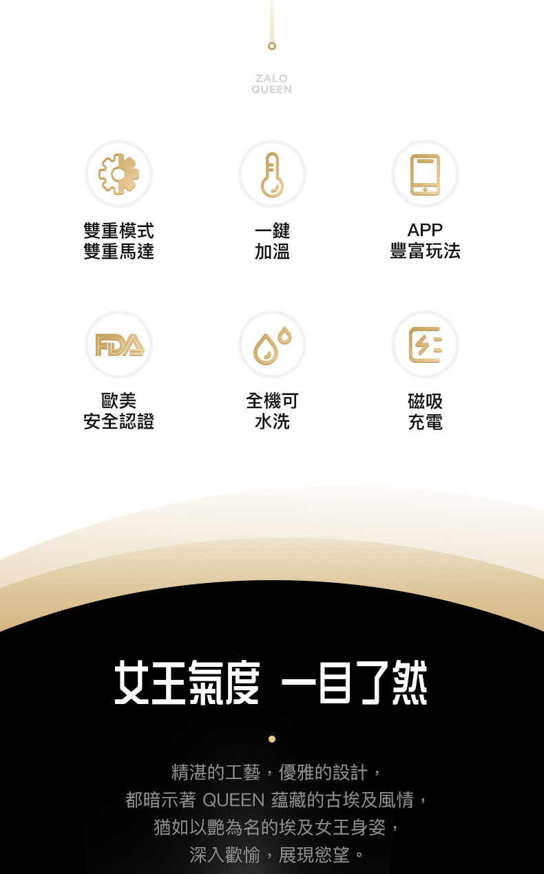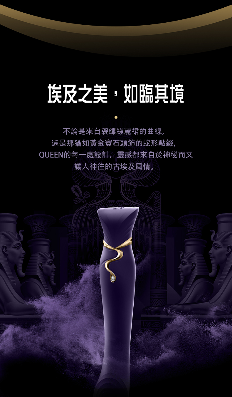 精湛的工藝、優雅的的設計,都暗示著QUEEN蘊藏的古埃及風情,猶如以艷為名的埃及女王身姿,深入歡愉、展現慾望