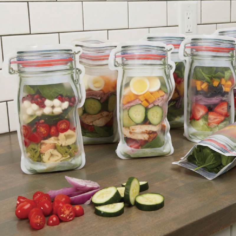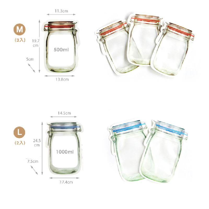 把密封袋設計成梅森罐造型,加寬底部使它能站立,放在桌上就像真的梅森罐一樣呢~可放入零食、果乾、餅乾,滴水不漏的封口與扎實的外包裝,保護食物不變質,密封袋本身可清洗,也可重複使用,超環保~家裡使用好看又特別,用它裝食物攜帶外出也方便![]()