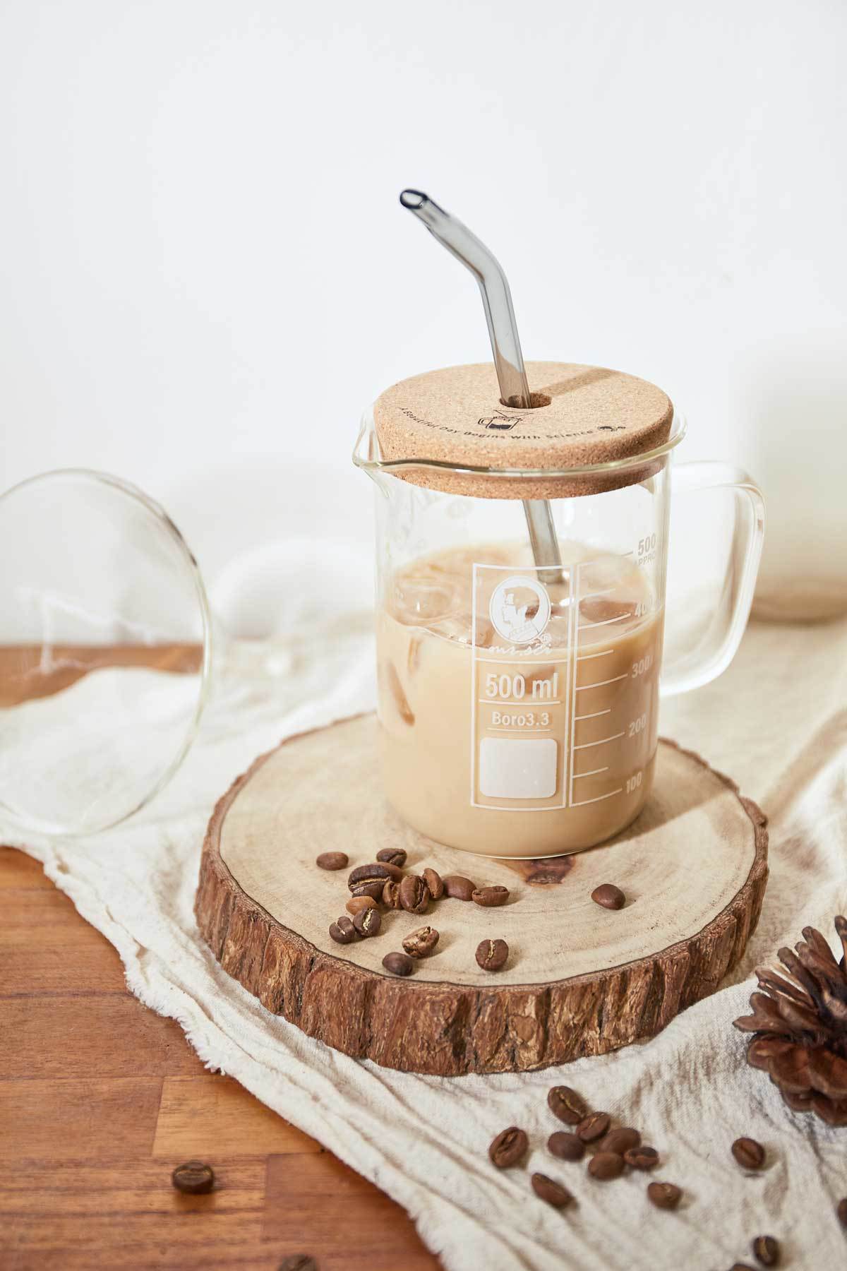 內容物:咖啡因理科燒杯、軟木杯蓋 (吸管僅為商品示意不附贈吸管)