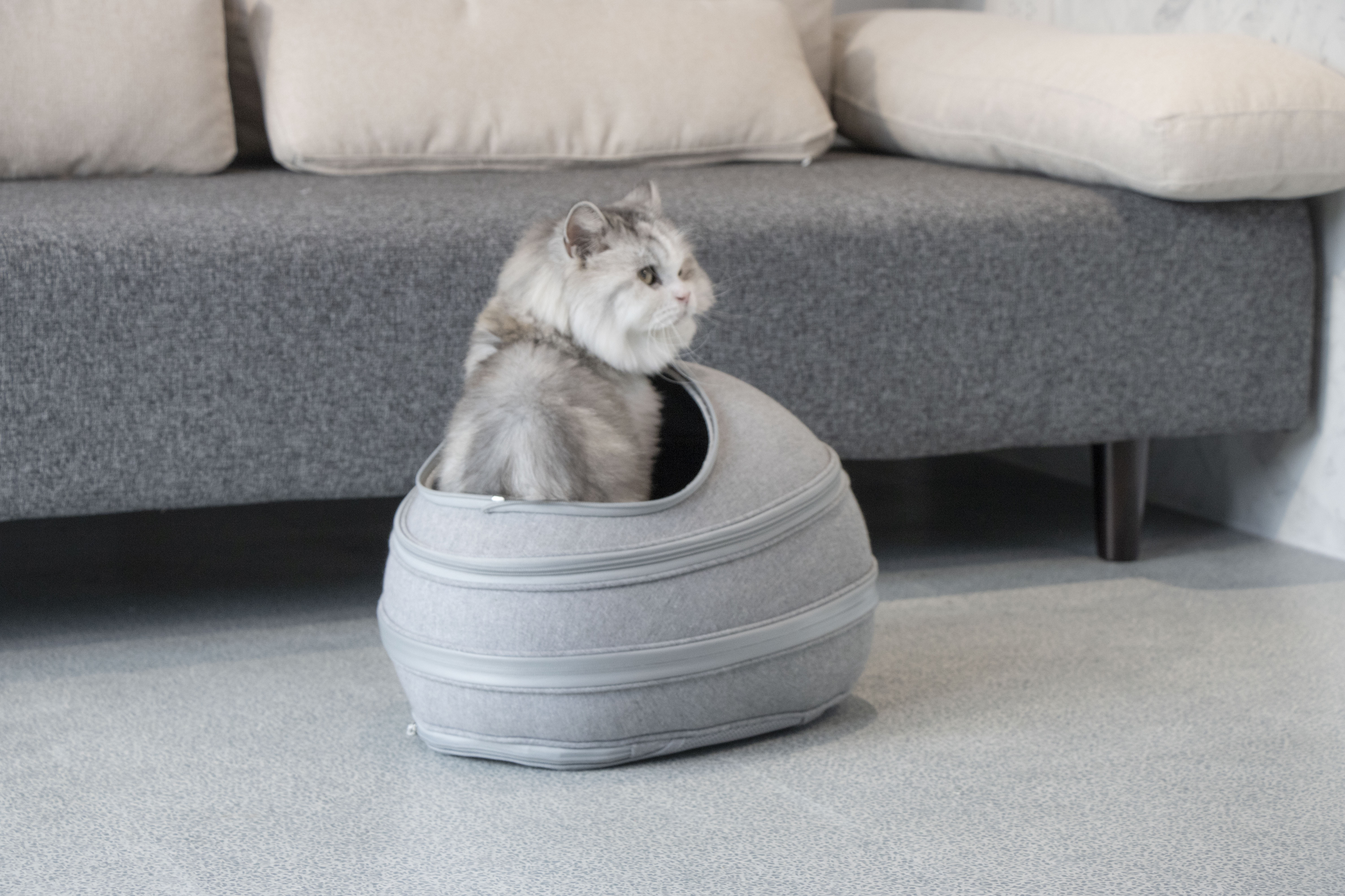 來自臺灣的設計團隊小宅生活,打造出了一款既是寵物睡窩,又是寵物外出包的「Eggy 小宅包」,讓貓主子們能夠充分熟悉氣味與觸感,減少他們外出時的緊張與不安,創造他們大膽接觸世界的機會。其中最大的特色就在於「倒著用,站著用,都好用」的設計理念,當小宅包站著就時尚的外出包,倒著就成了質感的居家睡窩。