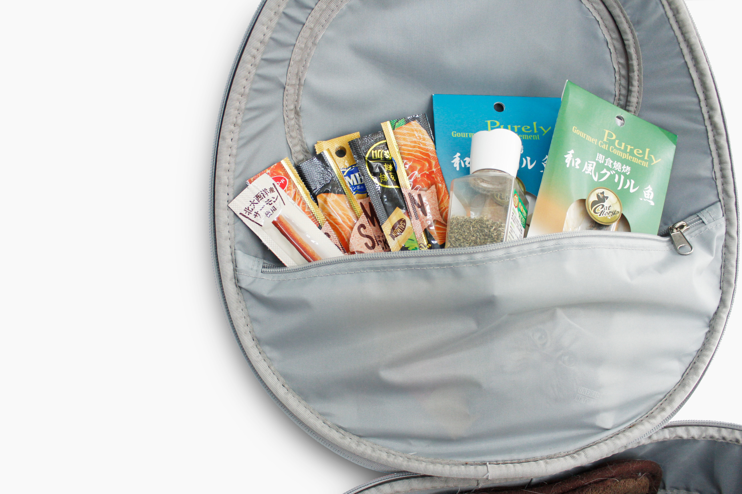 與貓咪隔開的內層還有置物空間,可以放下簡單的飼料、零食、木天寥、小玩具等等;