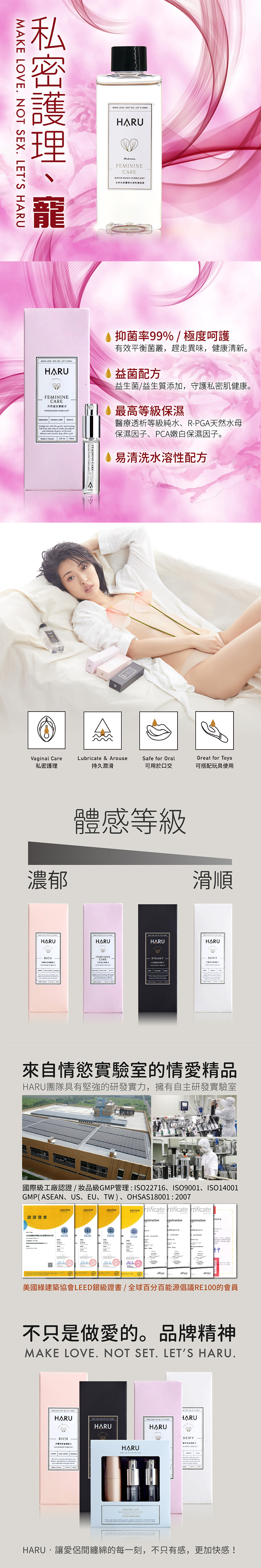 從這個理念出發,HARU 結合精心研發的配方,與時尚設計外觀,打造一系列昇華愉悅感受的情愛精品,讓愛侶們更自在,無拘束,隨時隨地都能共赴雲雨。