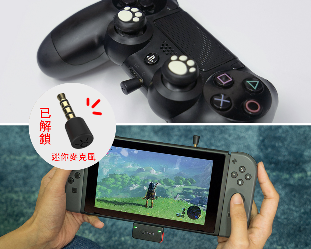 只要在 Switch 的音源孔中插入就能擁有收音效果,馬上與隊友展開語音對話。同時,只要將 GENKI 插在 PS4主機上、將迷你麥接在手把上的音源孔,就能用最愛的藍牙耳機+無線麥克風好好享受 PS4 !![]()