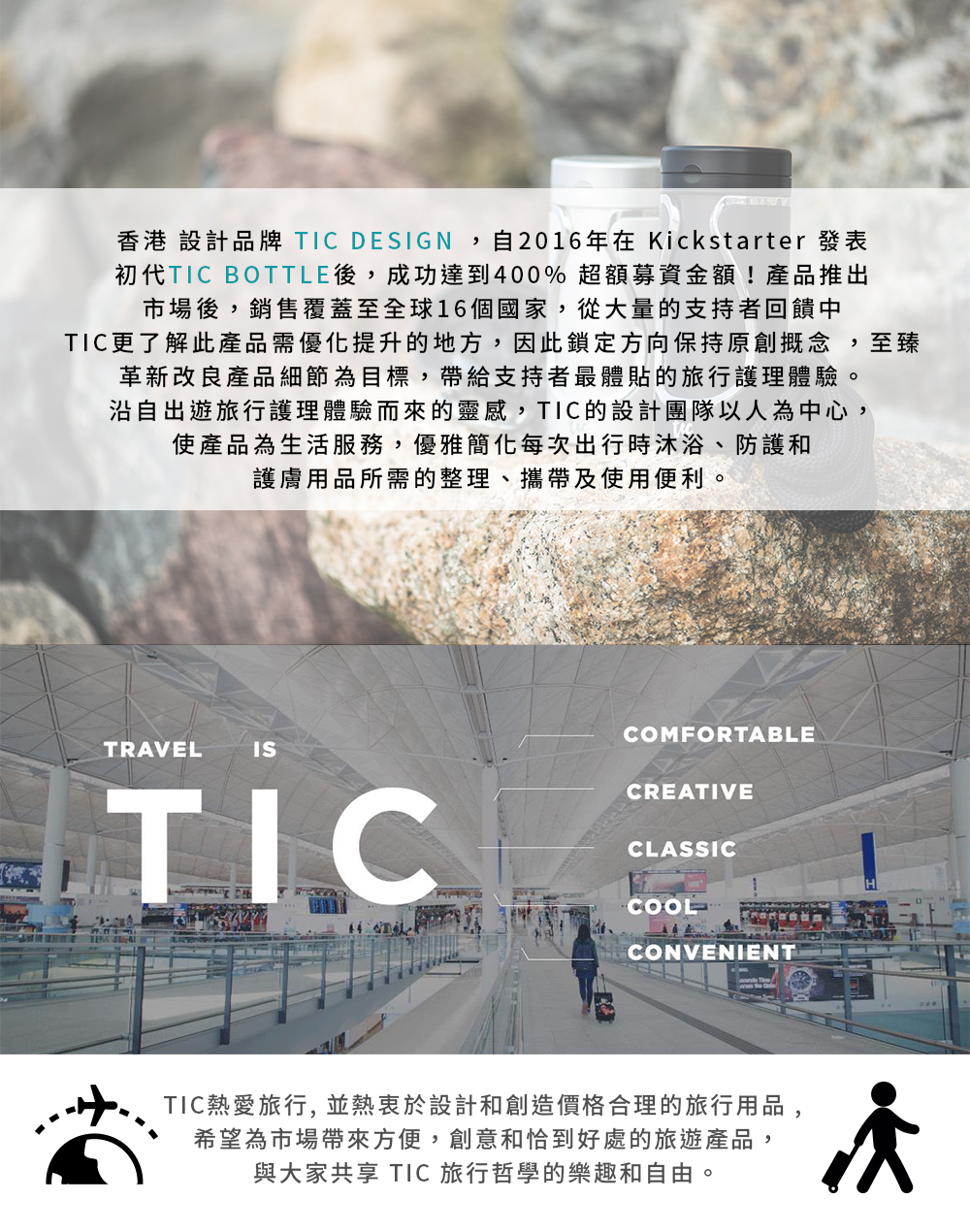 We’re passionate about designing and creating affordable products that help solve travel problems in new and innovative ways. We aim to bring to market travel products that are just the right combination of cool, convenient and creative, sharing the TIC travel philosophy of fun and freedom, with everyone.請看大人物介紹文章!