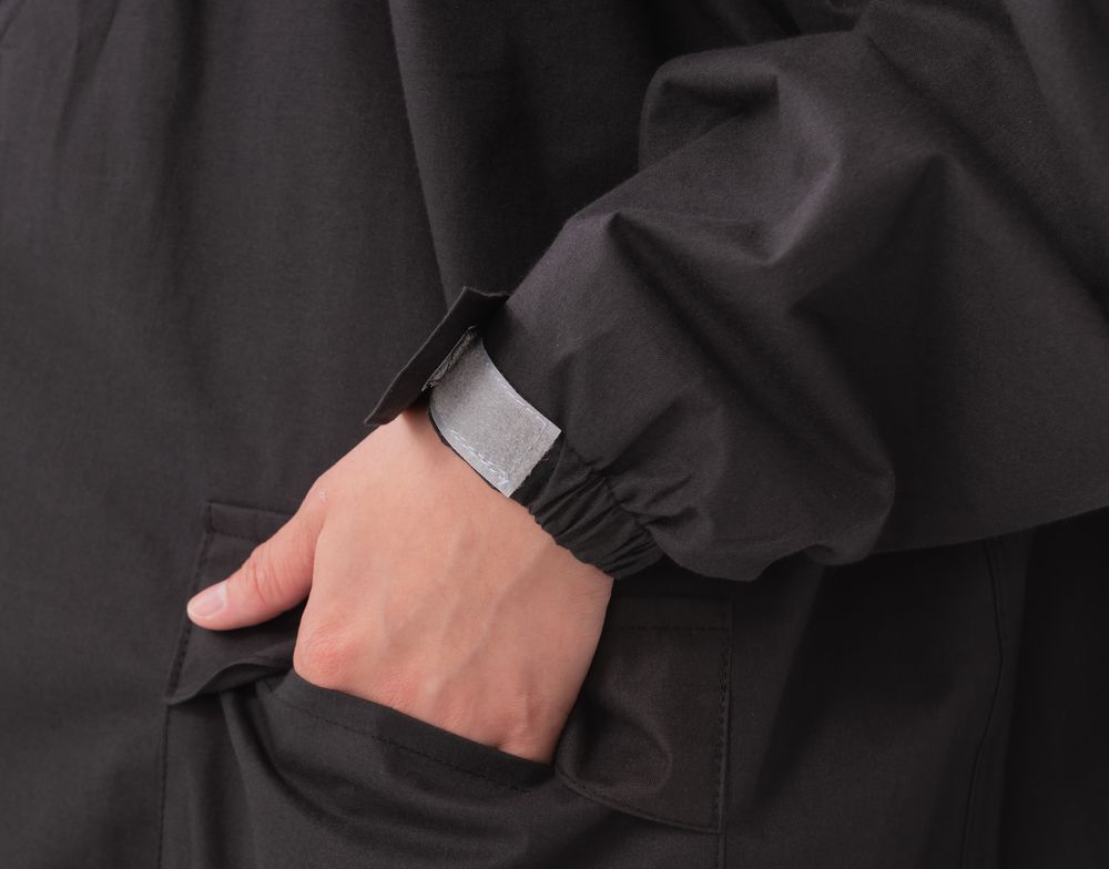 此棉質雨衣,布料透濕度達10,000 g/m2/24hr (JIS L1099 B1),在正常情況下 (非剛運動完),讓你穿著不再感到悶熱。