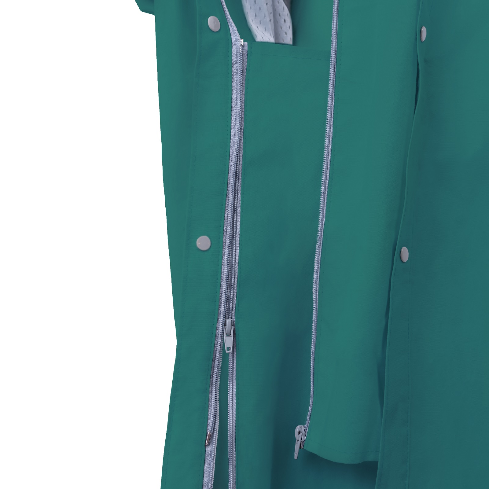 雨衣附有防黏網,不易沾黏穿脫快速。