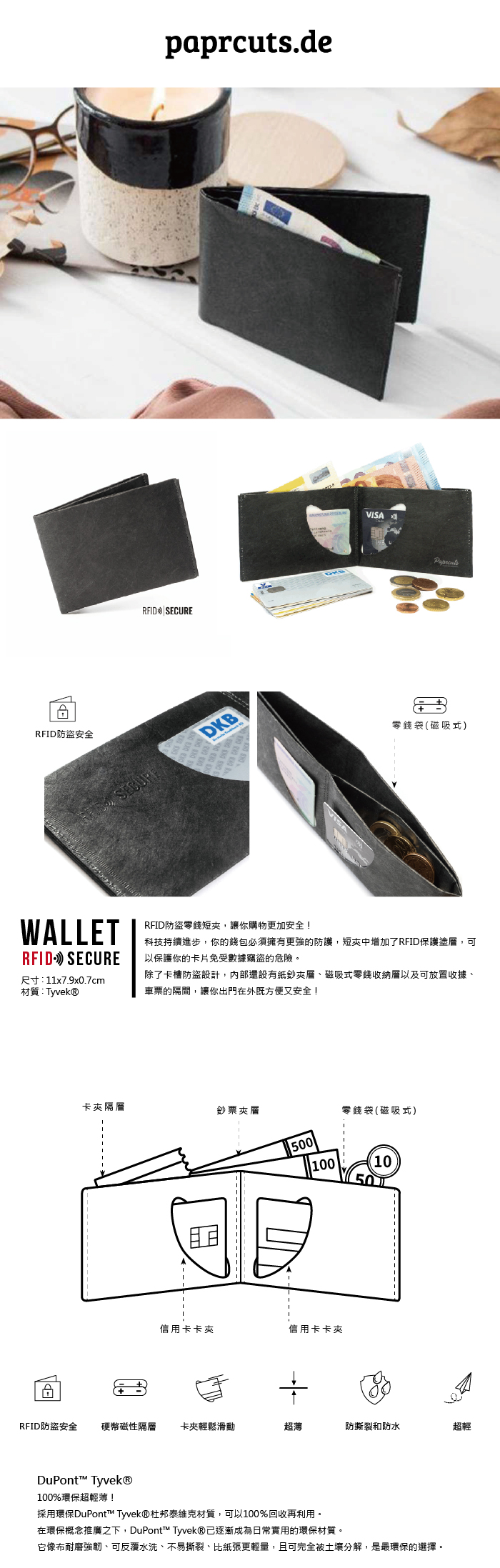 德國paprcuts.de RFID防盜零錢短夾 經典黑