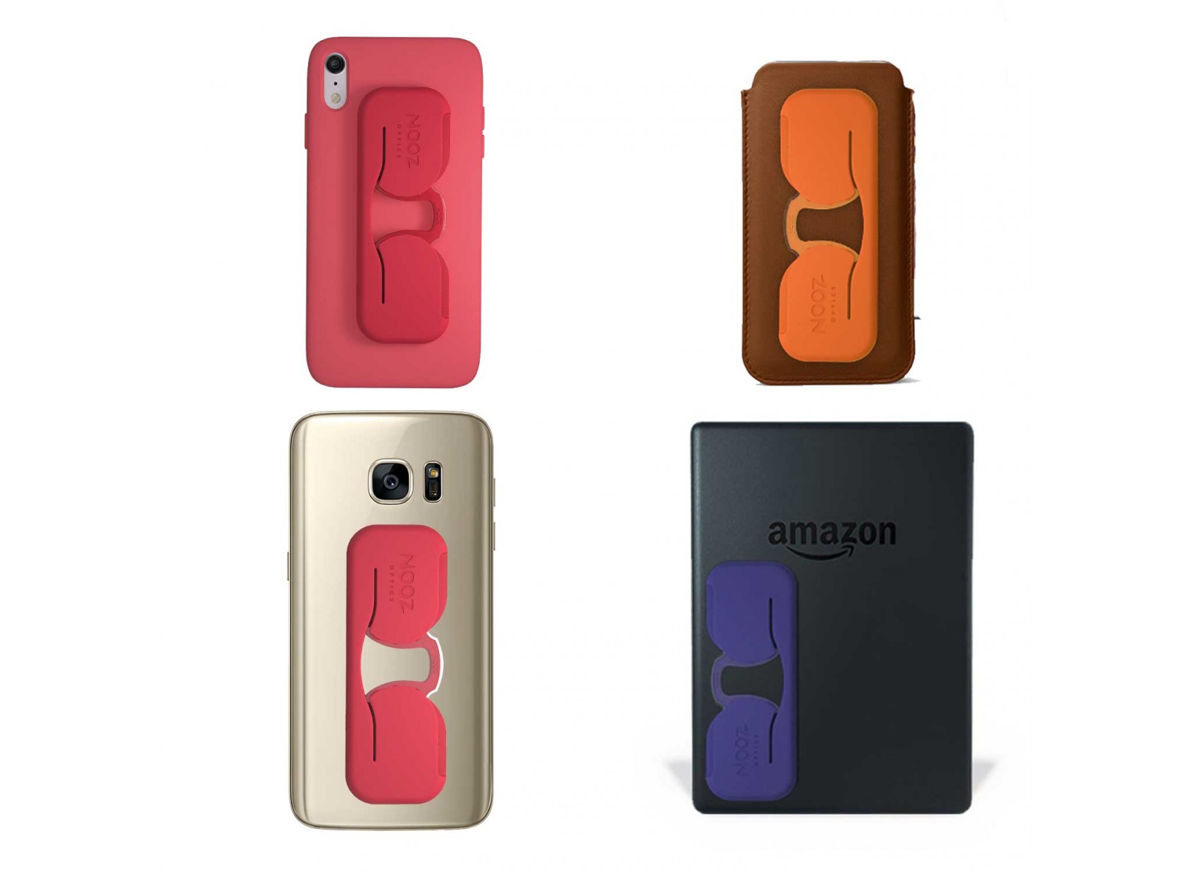 眼鏡收納盒可黏著在手機、平板電腦、筆記本等乾燥表面,可重複黏貼。